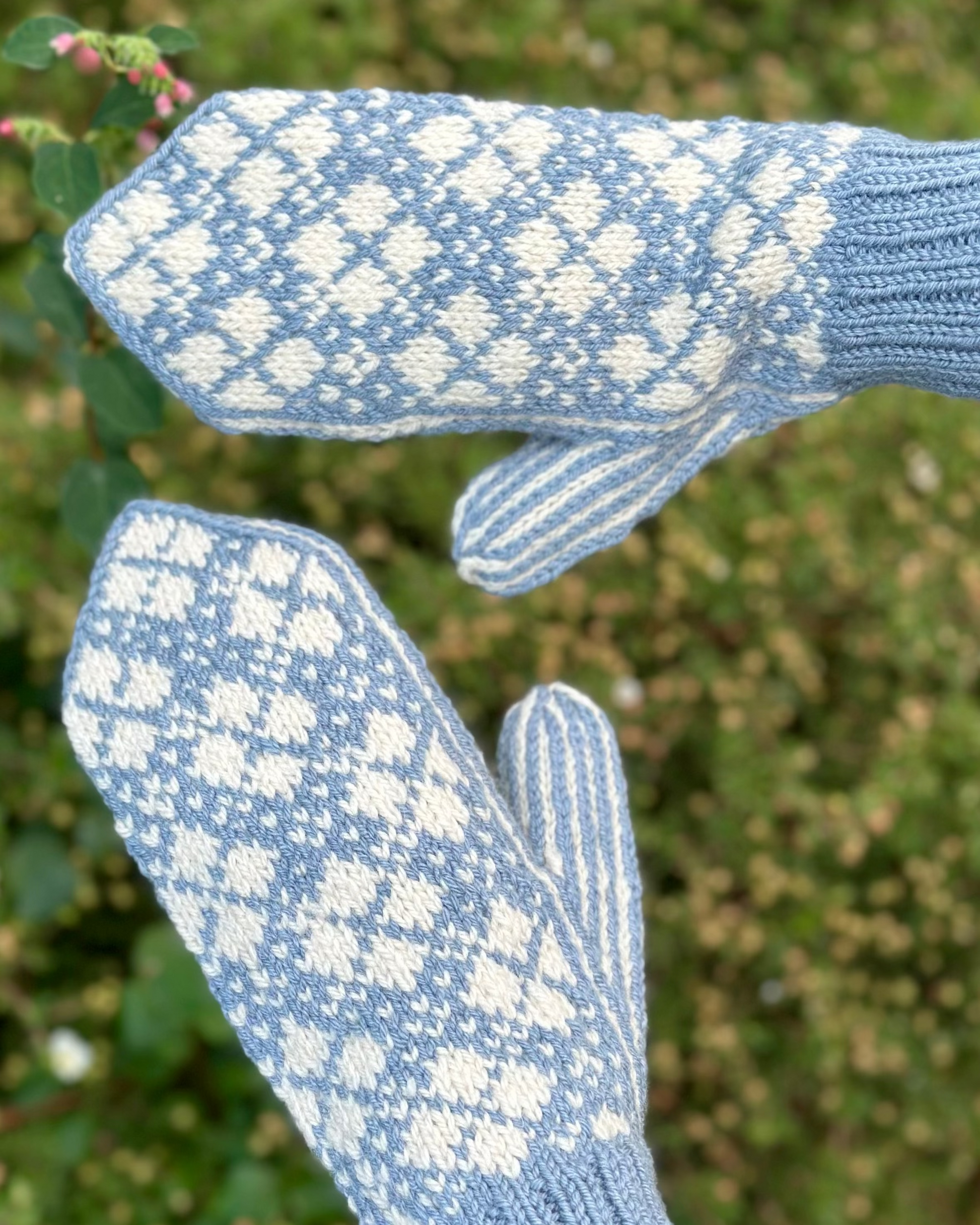Anna Mittens - Winter Edition (Anna Luffer - Vinter Version) er et par unisex luffer med et harlekin-inspireret mønster, som er perfekt til vinter. Lufferne strikkes rundt på pind 3,5 med tykt garn, som gør lufferne ekstra varme. Bemærk: Lufferne er strikket i uld, som gør at lufferne filter og skrumper i almen brug.